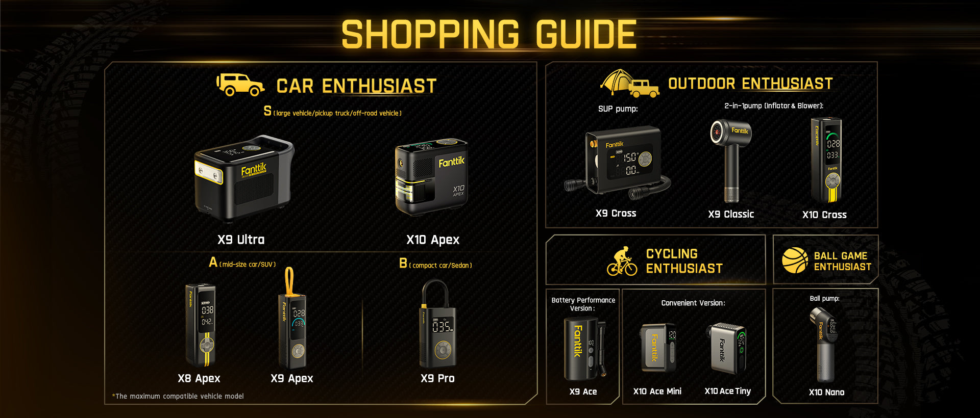 Equip yourself with a Fanttik inflator and transform the way you pump. Tailored for every lifestyle, from urban commutes to wilderness excursions. Browse Fanttik's full range and shop now!